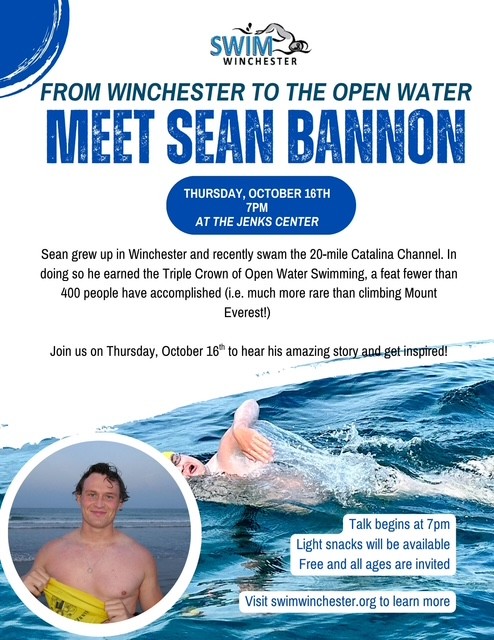 On June 29, 2024, Winchester native Sean Bannon joined the ranks of an elite group of swimmers who completed the 21-mile crossing of the English Channel from Dover, England to Calais, France. Please join us to hear Sean's inspiring story and chat with him about why access to water and recreational resources are so important. The event is free and all ages are encouraged to attend.